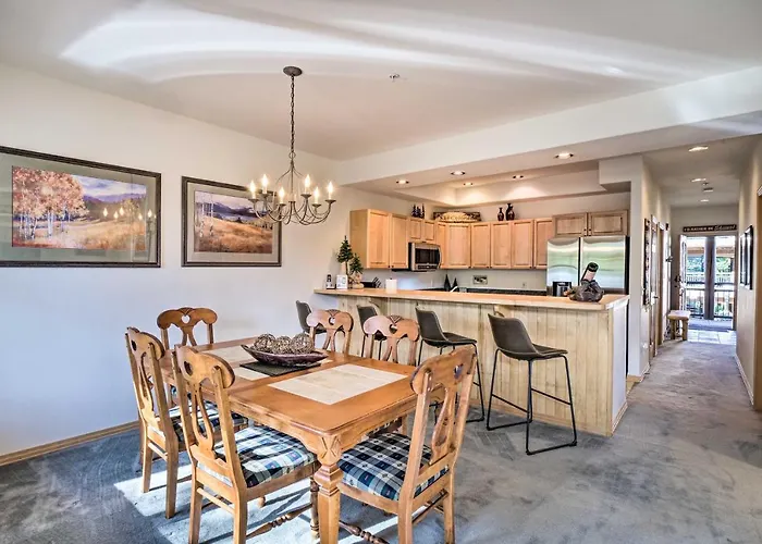 The 101 m² Breckenridge Condo With Hot Tub Less Than 1 Mi To Ski Lifts includes a patio and is situated approximately a 5-minute walk from Rotary Snowplow Park. This 2-bedroom apartment with a Jacuzzi is just a minute's drive from Mountain Top Children's Museum.